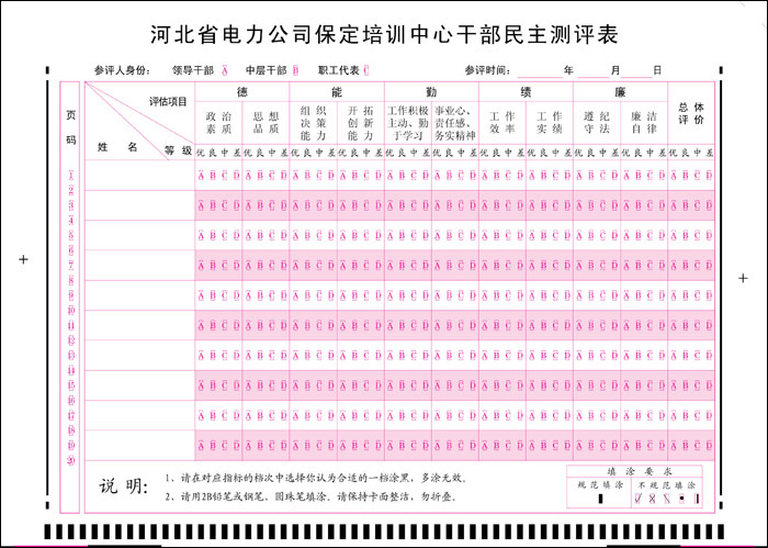 我們的閱讀機采用的雙發(fā)一收光柵式光電傳感器,并采用DSP處理器,CPLD和高頻數(shù)字電路抗干擾技術(shù),實現(xiàn)了高速采樣控制和智能模糊識別算法,大大改善了涂點識別的準(zhǔn)確性和智能化程度,徹底解決了以往閱讀機因電路造成的漏、冒點問題。對于不太規(guī)范的,橡皮擦不干凈的涂點都有令人滿意的智能識別效果并增加了系統(tǒng)的穩(wěn)定性