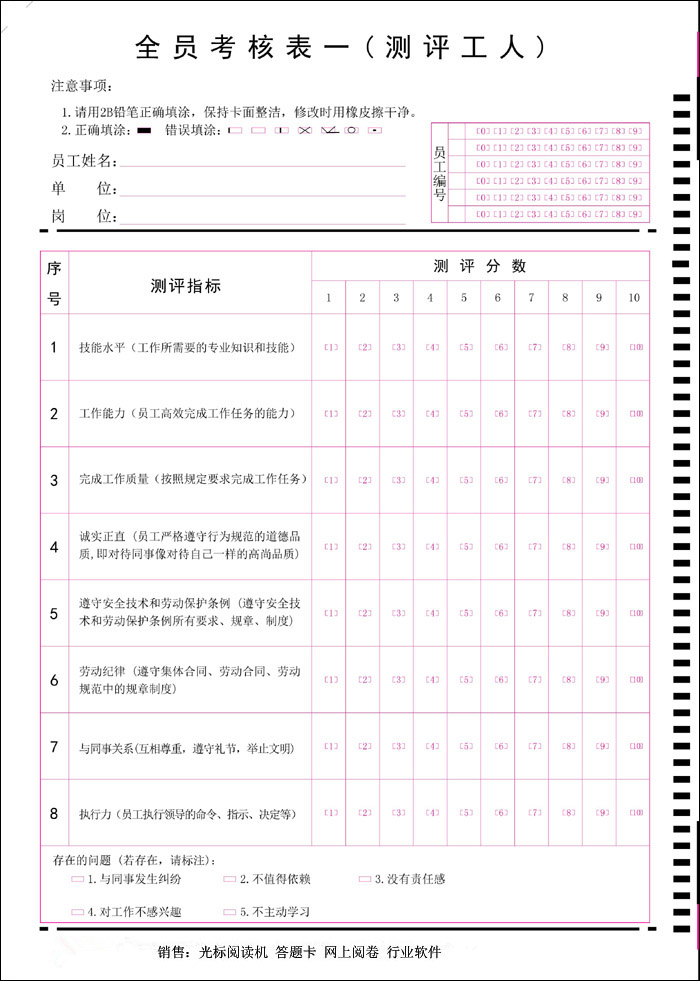 品科光標(biāo)閱讀機(jī)取材上乘,工藝規(guī)范,確保精確無誤:對(duì)信息卡上的所有被閱讀部分的定位精度要求較高,所以品科答題卡每一張都按照嚴(yán)格要求制作。